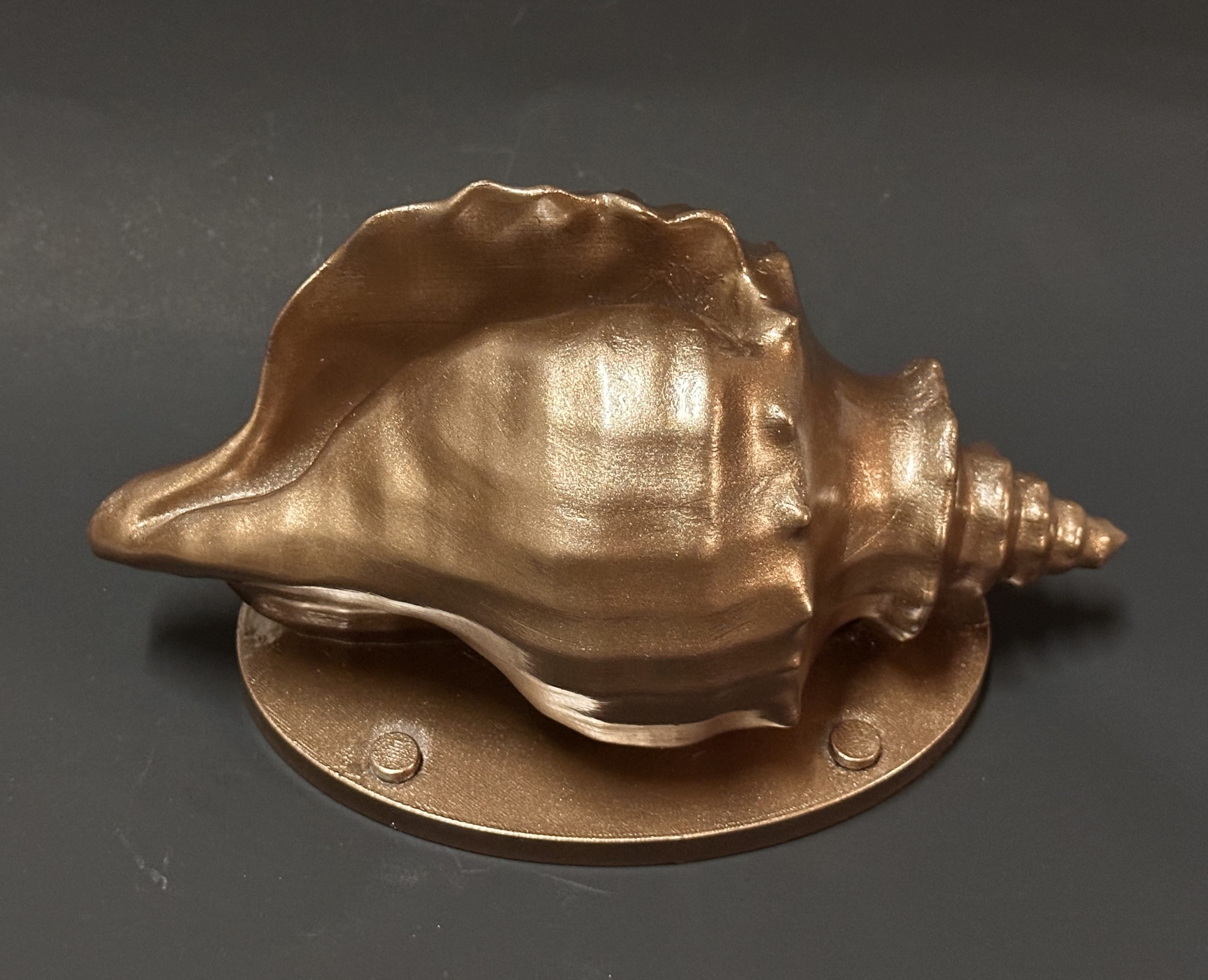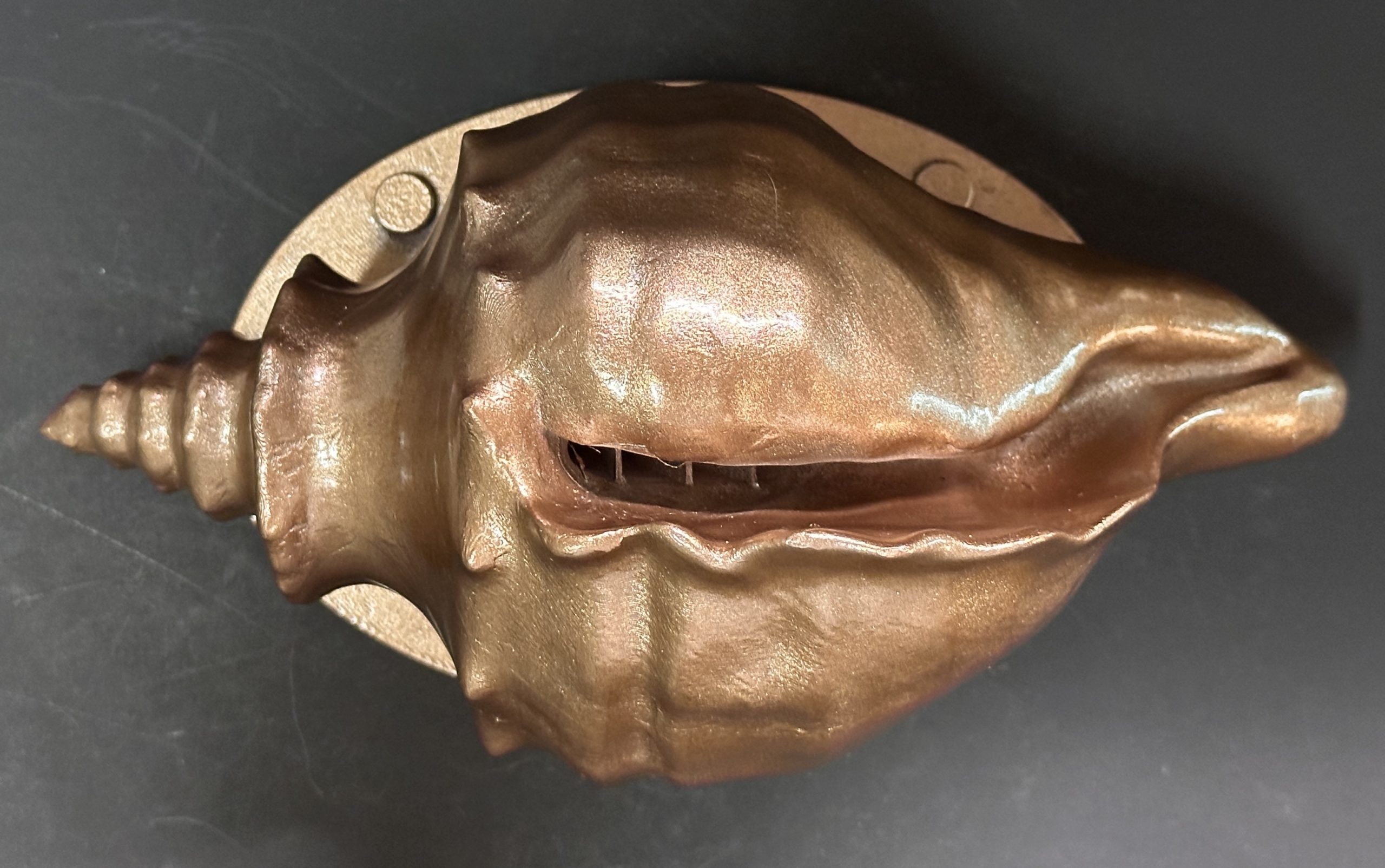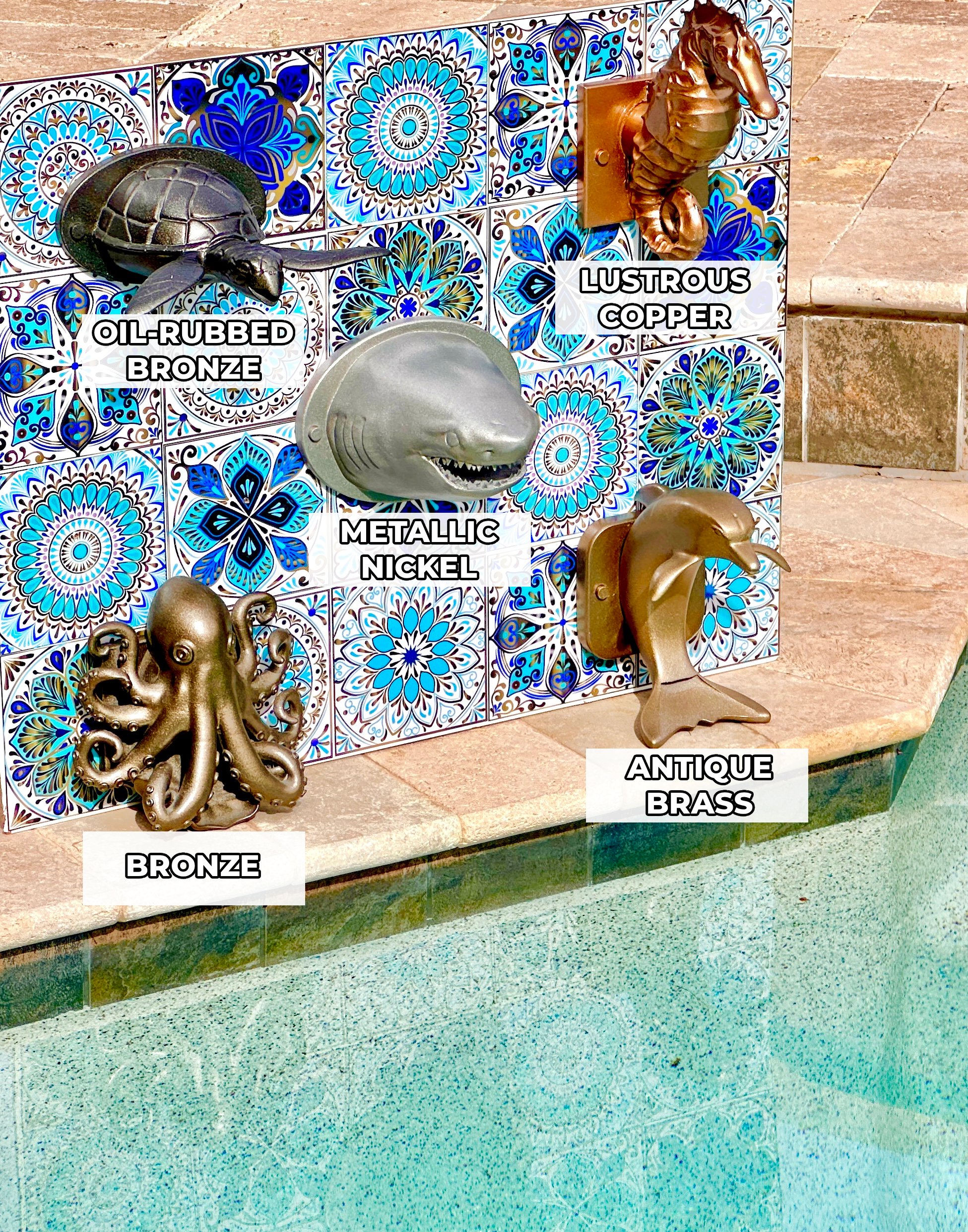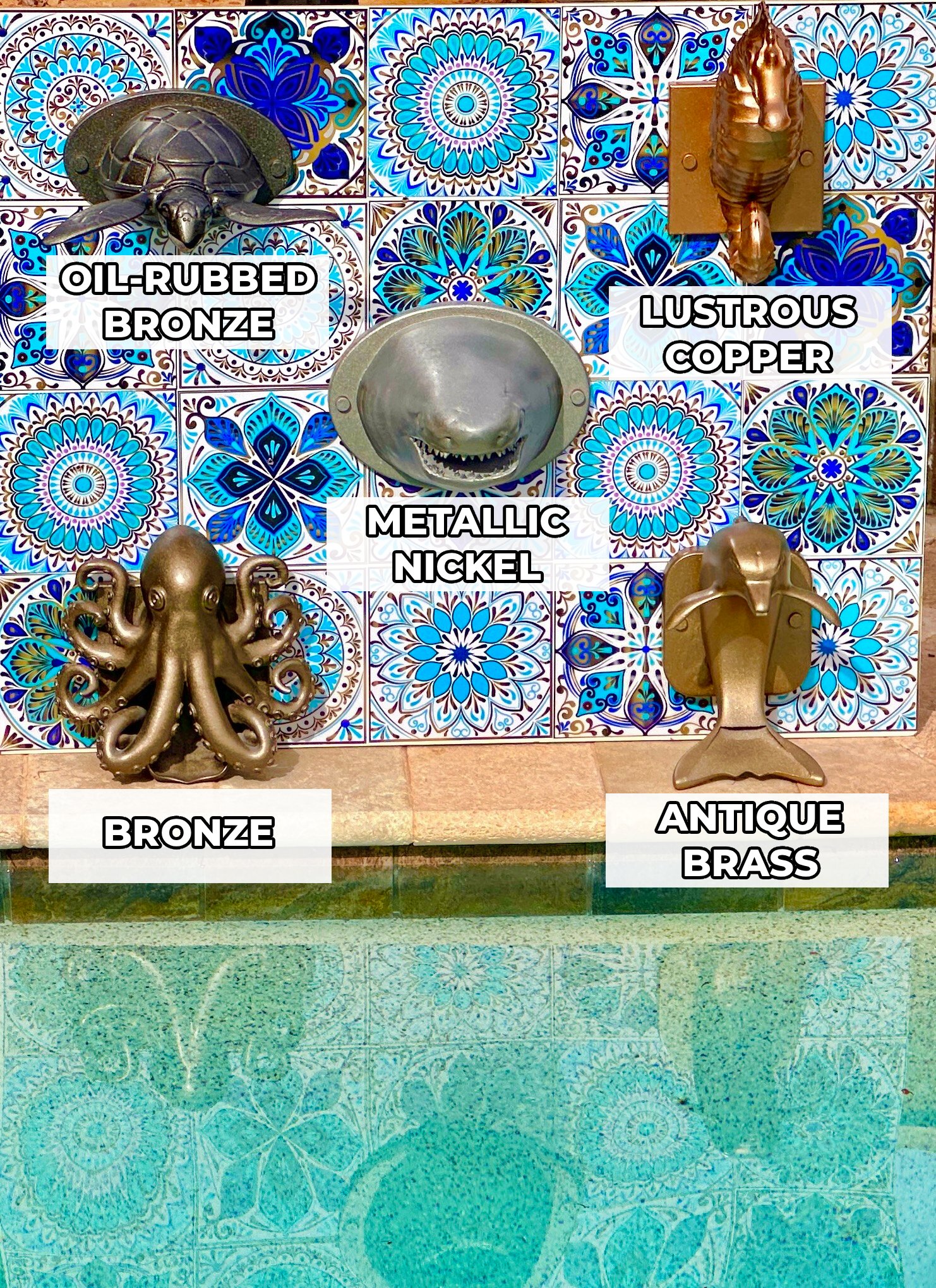 Each Conch Shell Spillway is produced through a multi-day, three-stage fabrication process using a durable composite with a UV- and chemical-resistant plastic core. After forming, each piece is precision-machined and surface-refined, then hand-finished with a premium metallic coating engineered to capture the depth and luster of real metal—without the weight, corrosion, or maintenance concerns. Multiple layers of marine-grade urethane are applied to create a rich, long-lasting finish designed to withstand sun exposure, chlorinated water, and continuous flow.