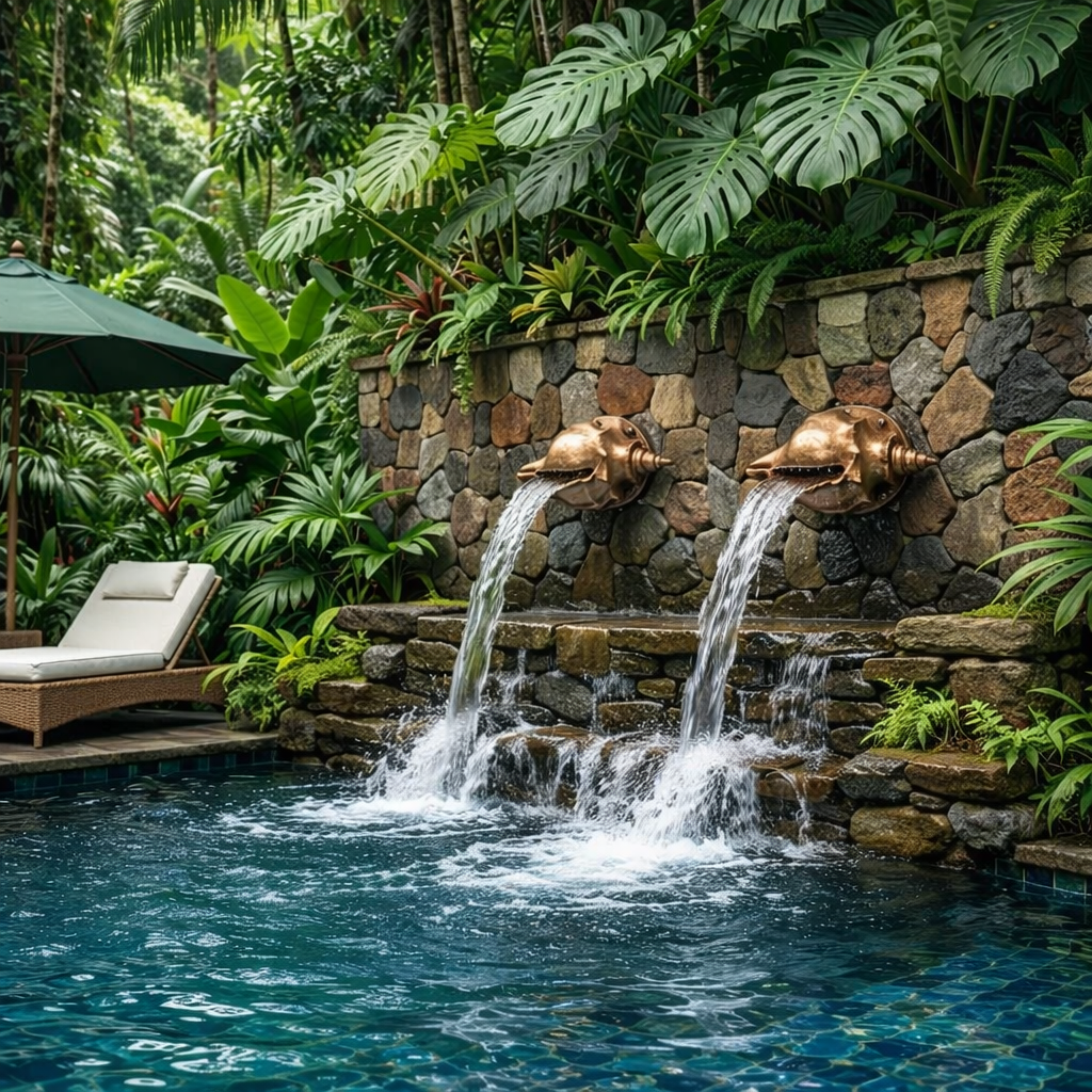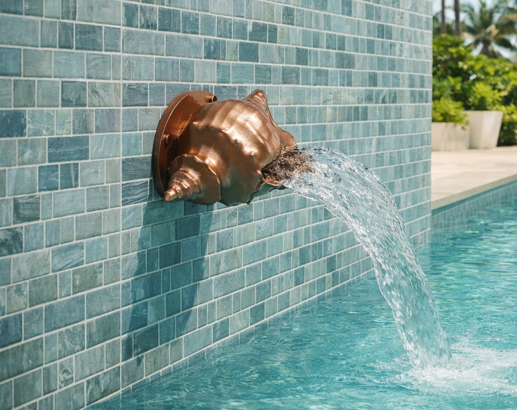 Bring elegant coastal movement and refined character to your pool or garden wall with this artistically detailed conch shell spillway. The natural shell contours and flowing form create visual interest even when idle, while the precisely engineered spillway lip produces a smooth, controlled sheet of water that complements modern, coastal, lagoon-style, and resort-inspired outdoor spaces.