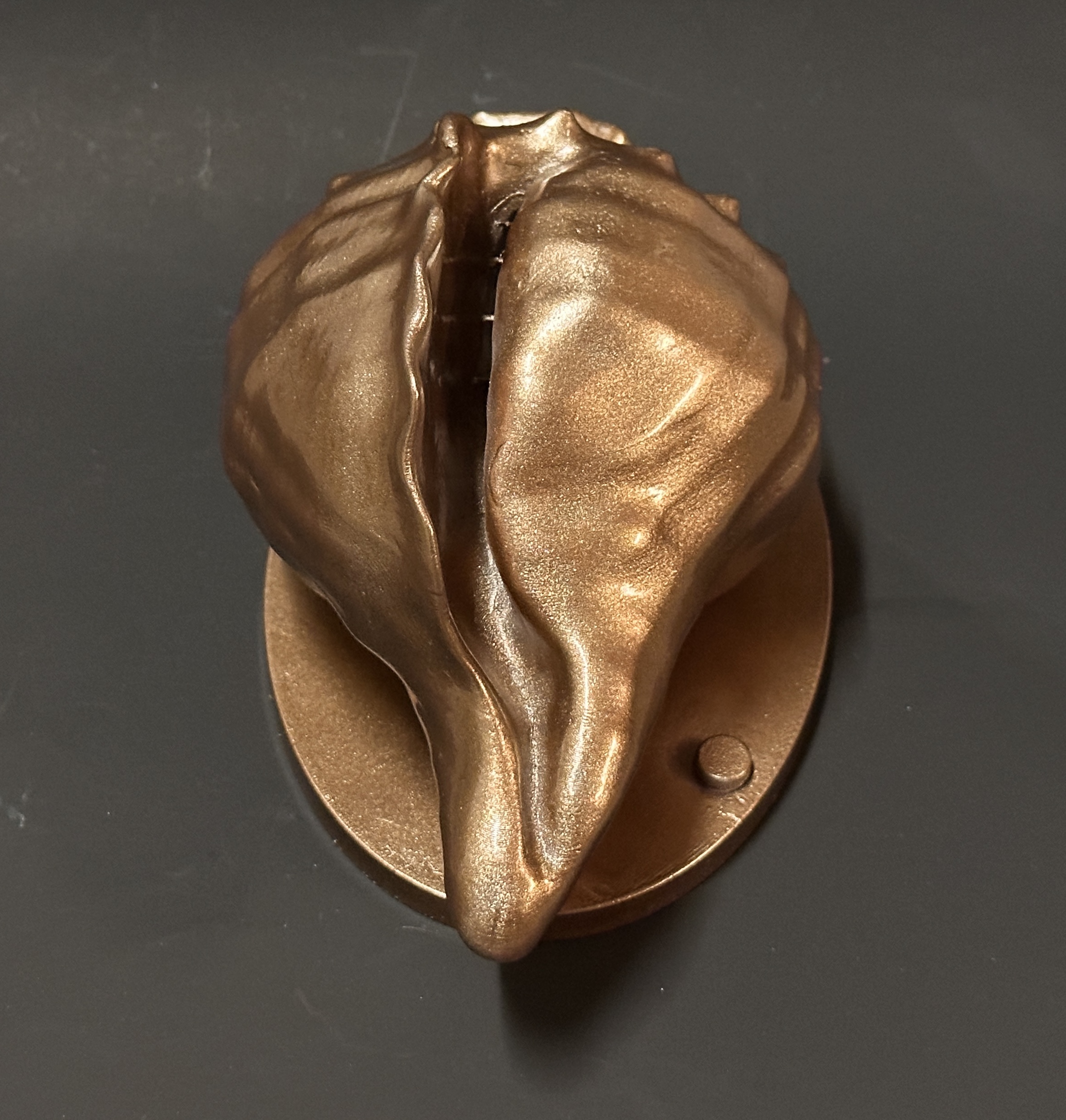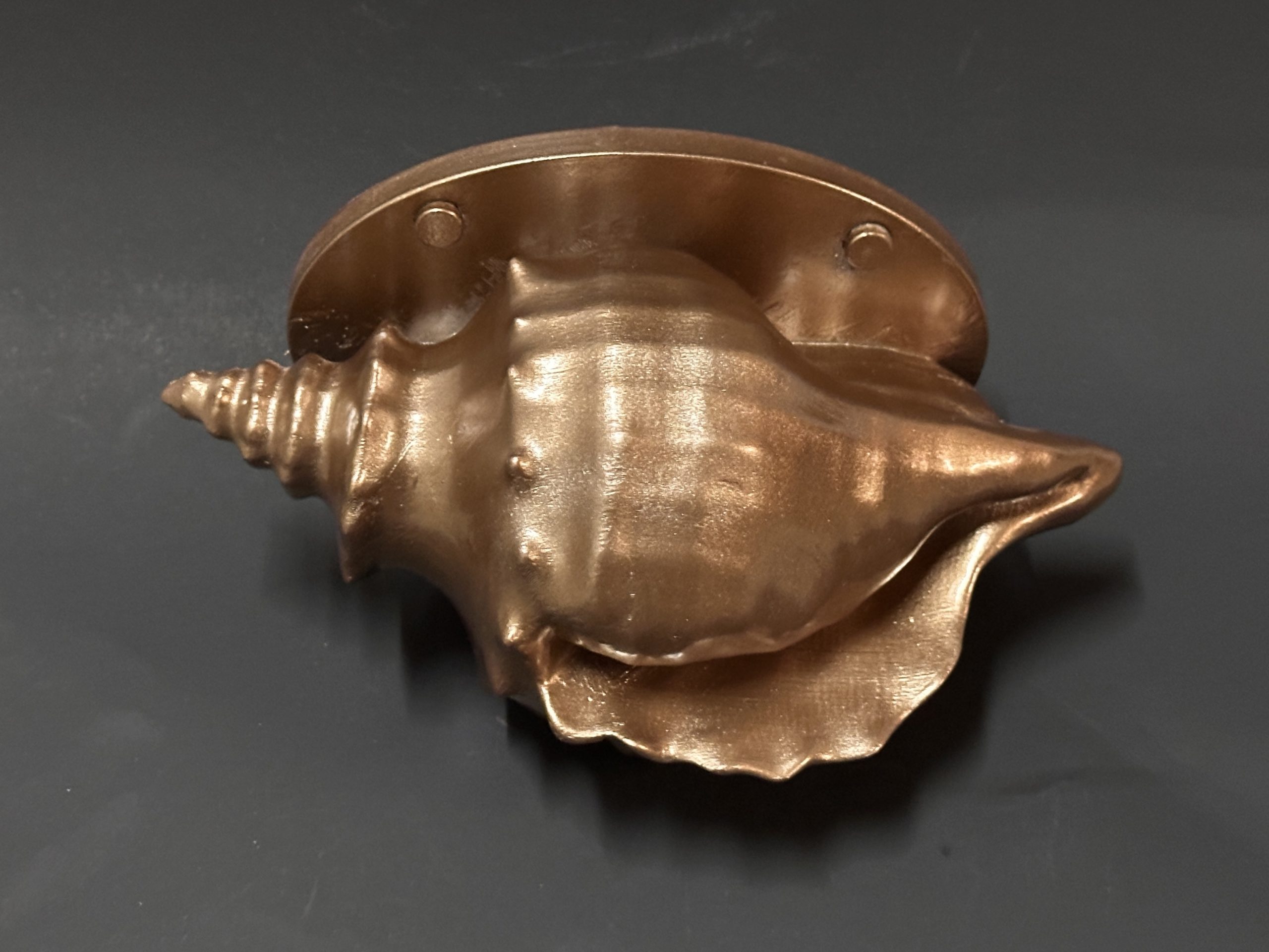 The Conch Shell Spillway is an original sculptural design available exclusively from Artista Pools. Pictured is our Lustrous Copper Finish.